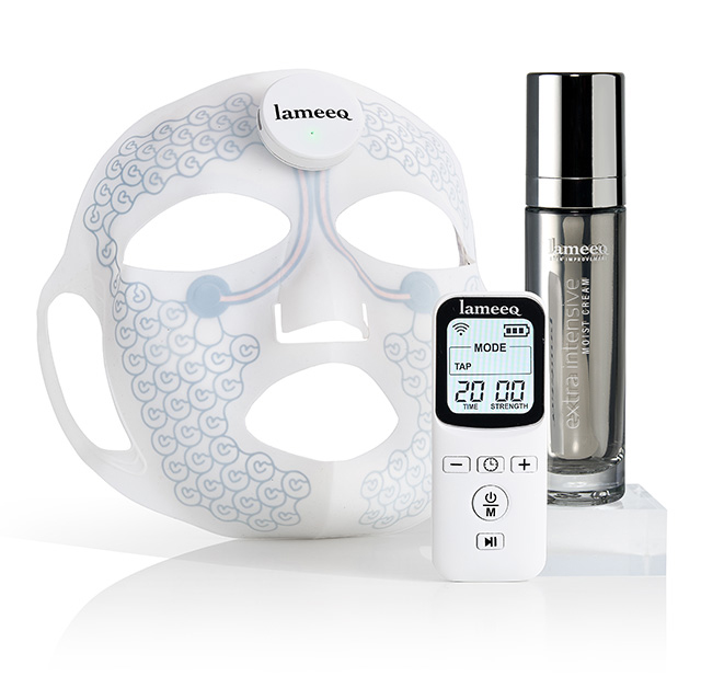 lameeq mask ist ein kosmetisches Heim-Behandlungssystem, das perfekt auf unsere lameeq skin improvement-Produkte abgestimmt ist. Spezielle Mikrostrom-Impulse können die mit Elektrolyten beladenen Produkte in größerer Menge in tiefere Hautschichten einbringen. Feuchtigkeit spendende Inhaltsstoffe sollen somit für ein frisches und pralles Hautbild sorgen. Bekannte Kosmetik- und Modezeitschriften berichten regelmäßig über die hervorragenden Behandlungsergebnisse durch Mikroströme. New York, Paris London - zunächst waren diese Behandlungen dort Trend - durch lameeq sind sie nun zugänglich für jedermann - jederzeit und überall!