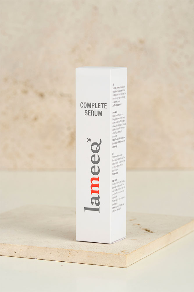 Groeifactoren, retinol en bakuchiol ondersteunen de celvernieuwing. Daarnaast worden er speciale werkzame stoffen gebruikt om niet alleen de beschermende barrière van de huid te versterken, maar ook om de telomeren (uiteinden van de chromosomen) te beschermen. Het rafelen van de haarpunten houdt rechtstreeks verband met het verouderingsproces van de huid. Deze ontdekking werd bekroond met de Nobelprijs voor Geneeskunde. Complete Serum bevat actieve ingrediënten die de werking ervan kunnen versterken. Bij een hoogwaardig product zijn niet alleen de ingrediënten van belang, maar ook welke werkzame stoffen met elkaar gecombineerd zijn. Een aspect dat vaak wordt verwaarloosd bij de ontwikkeling van hoogwaardige producten.