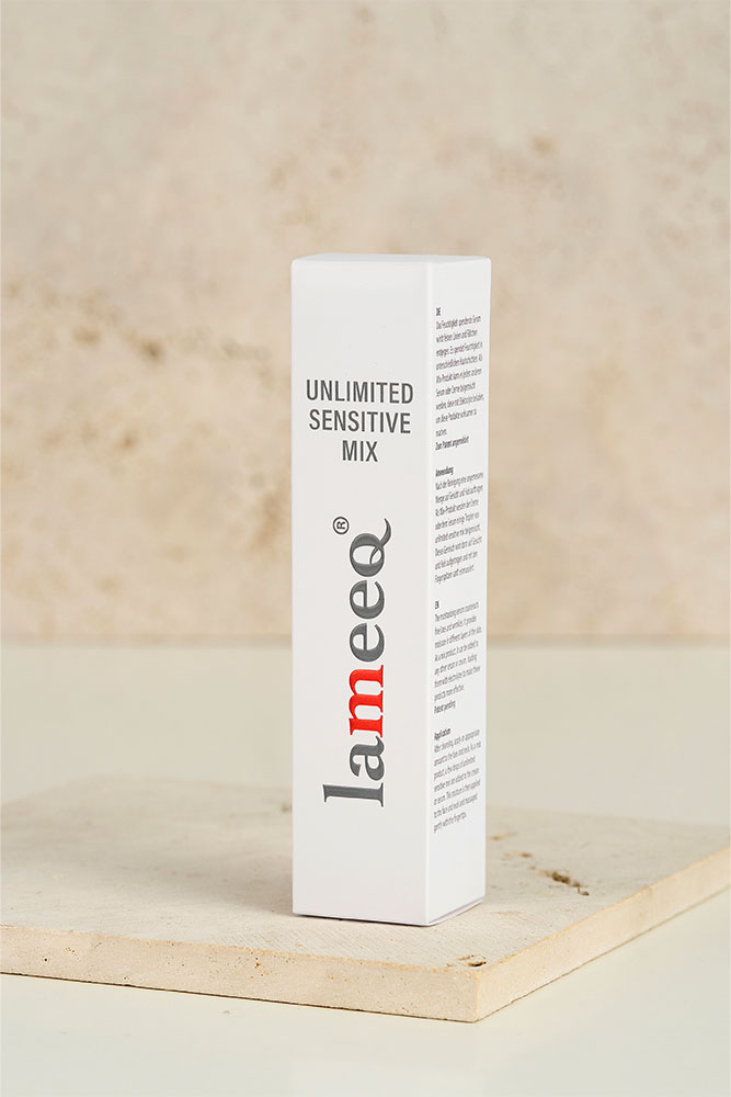 Mix: Unlimited Sensitive Mix kan worden gebruikt als een hoogwaardig serum of gemengd met andere serums of crèmes (inclusief producten van derden). Dit betekent dat elk product vol zit met elektrolyten. Door gebruik te maken van lameeq-technologieën (elektrische velden) kunnen actieve ingrediënten dieper en in grotere hoeveelheden in de huid worden ingebracht.